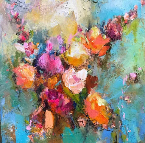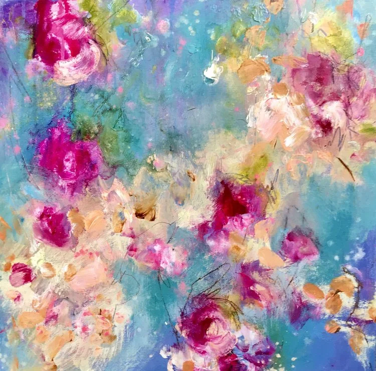 Carrie Clayden is a native Californian, growing up in Los Gatos, Ca. She received her Bachelors of Arts from UCSC in 1995 and now resides in Santa Cruz, Ca. Carrie is an internationally known artist, having been represented by The Art Agency in London, JCOS in Los Gatos, Ca, and Curated by the Sea in Capitola. Florals are Carrie’s mainstay, using her hands to create dancing petals never fails to delight her senses. Her painting style is semi-abstract in nature, dreamy and ethereal in feeling, abstractions hinting at stories untold. The foreground and backgrounds negotiate and dance to an exquisite never ending narrative. A celebration of the advent of spring (Carrie’s birth month), the confidence of femininity and the fountain of rebirth, Carrie’s paintings exhibit a richness and depth as though each piece had been created over the course of many years. She teaches classes at the Santa Cruz Art League and has an enthusiastic following of students.