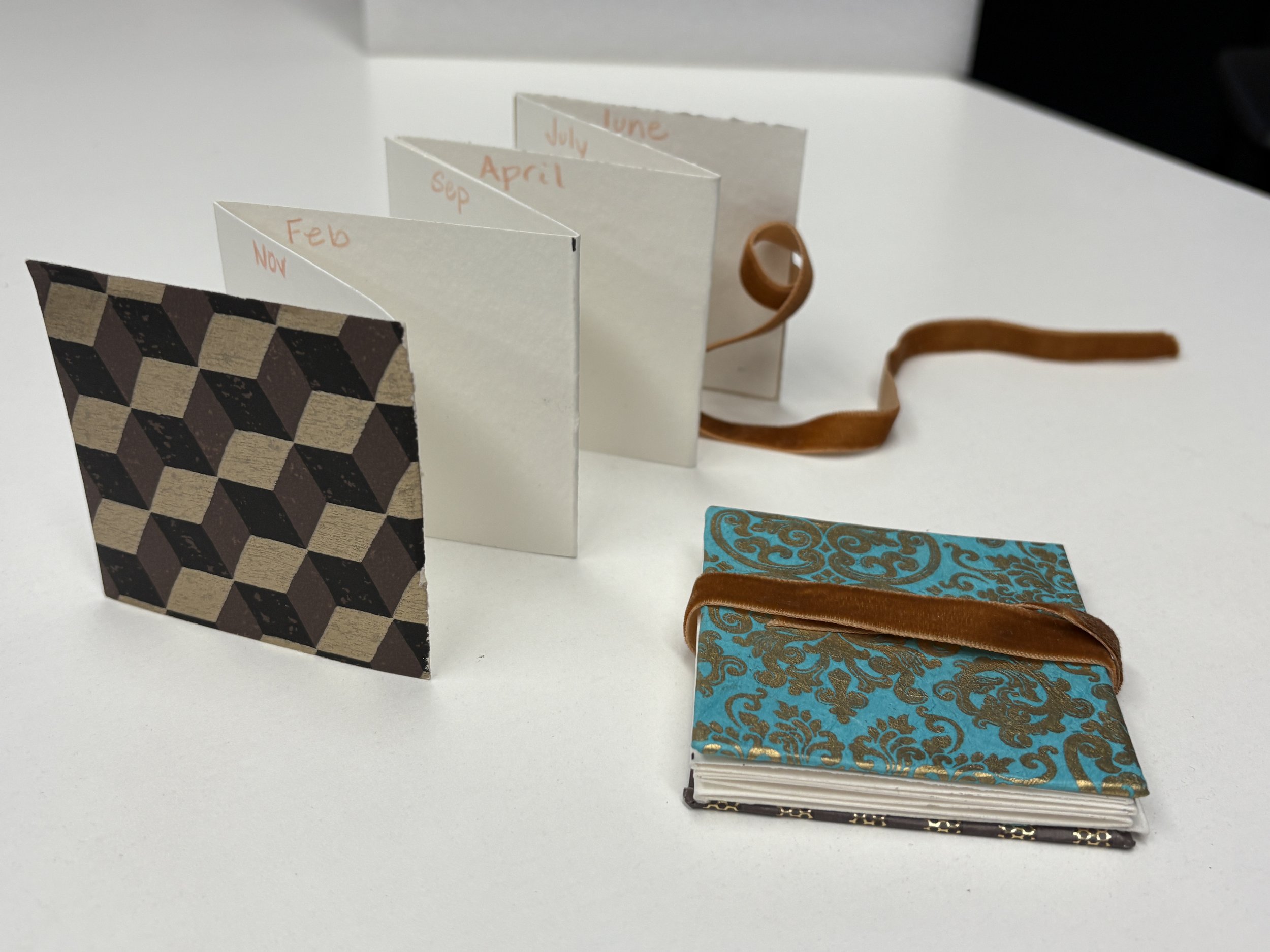 Inspired by book and fiber artist Jody Alexander, you are invited to drop into the makerspace and create your own accordion book. You will learn how to fold and glue pages to create twelve spaces, one for each month of the year. Choose a front and back cover from our patterned paper collection or design your own. Use your finished book to reflect on your yearly intentions, draw one sketch per month, or gift it to a friend. Stop by the exhibit Stitches & Wiggles: Unraveled and Reimagined Mixed Media Art by Jody Alexander and Thomas Campbell to see Jody Alexander’s accordion book on display..