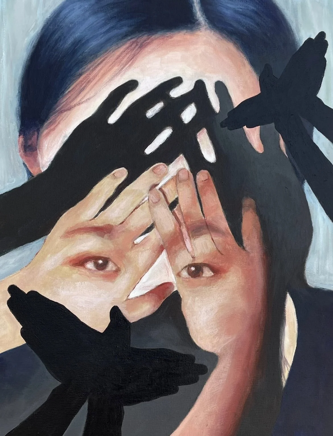 Eulina Ji, Shadow Puppets, Acrylic on canvas, Branham High School, Grade 12, Instructor: Jeannine Black