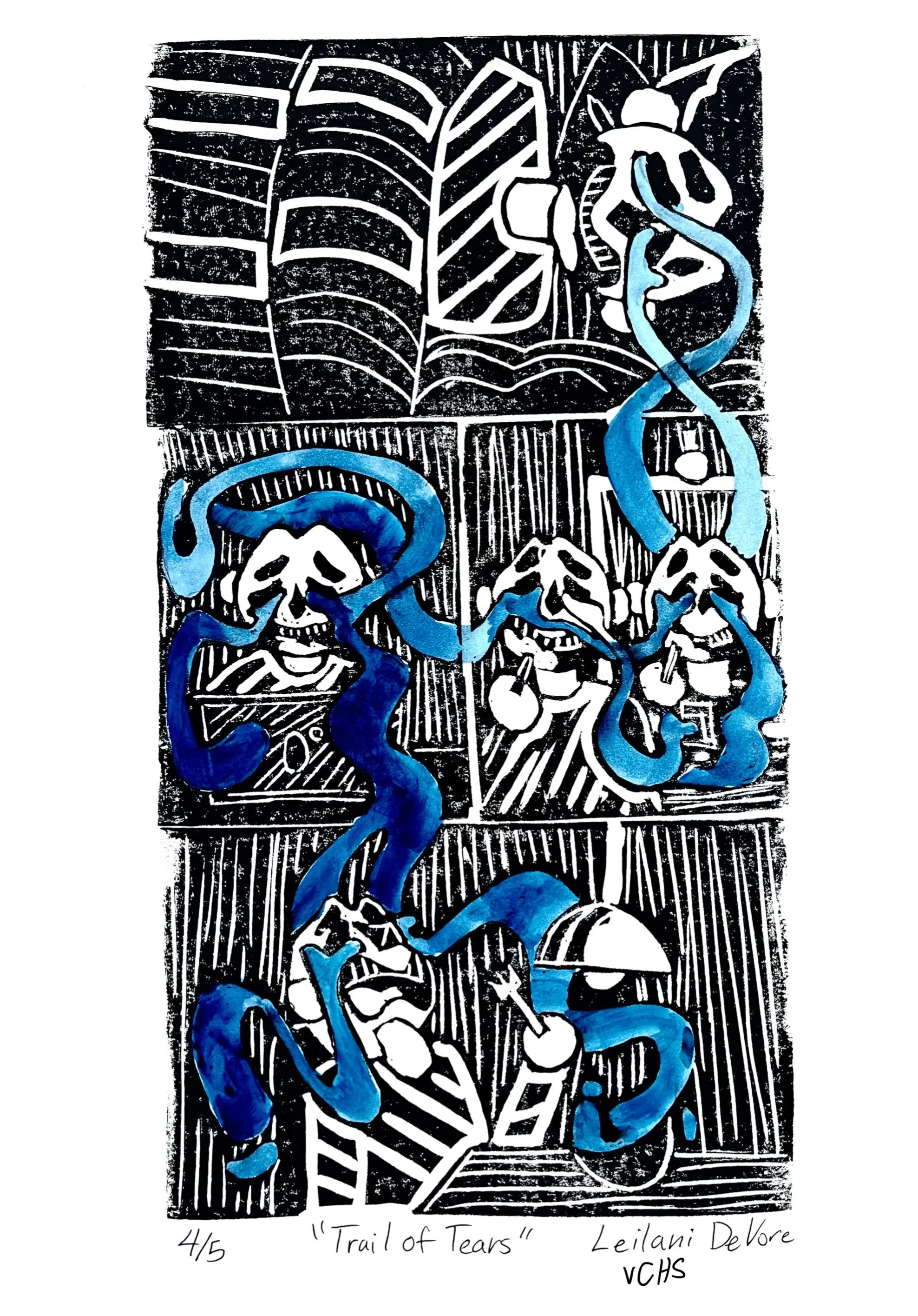 Leilani DeVore, Trail of Tears, Ink, acrylic paint, mixed media paper