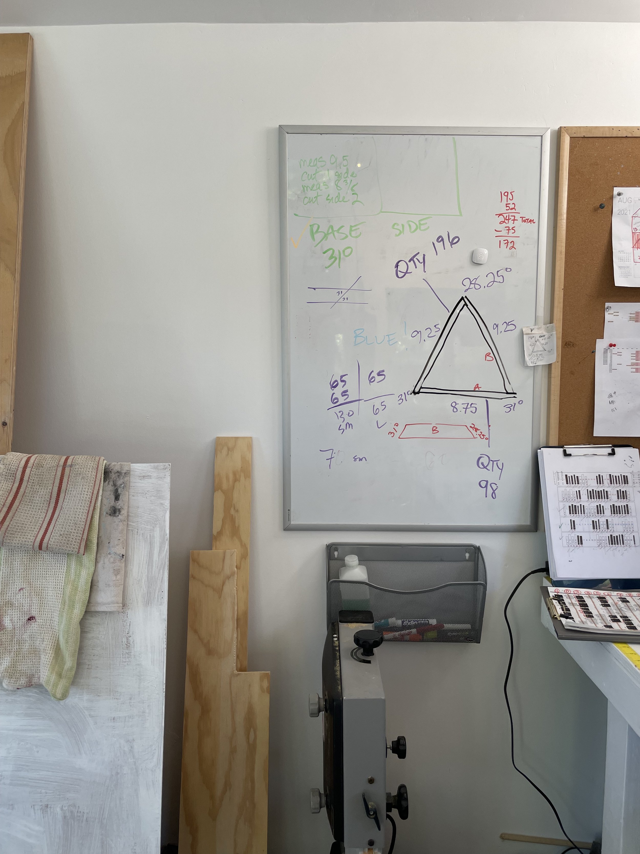 As a member of NUMU’s team, I jumped at the opportunity to visit the Marin-based artist at her home studio, eager to see the behind-the-scenes process of how these floor-to-ceiling sculptures were being made. Previously having had a studio in San Rafael, Sawyer sought to work a little closer to home, not knowing how important this decision would become with the oncoming pandemic. She had a studio built in her backyard, setting it next to the wisteria pergola which makes for shaded space to operate her table saw.