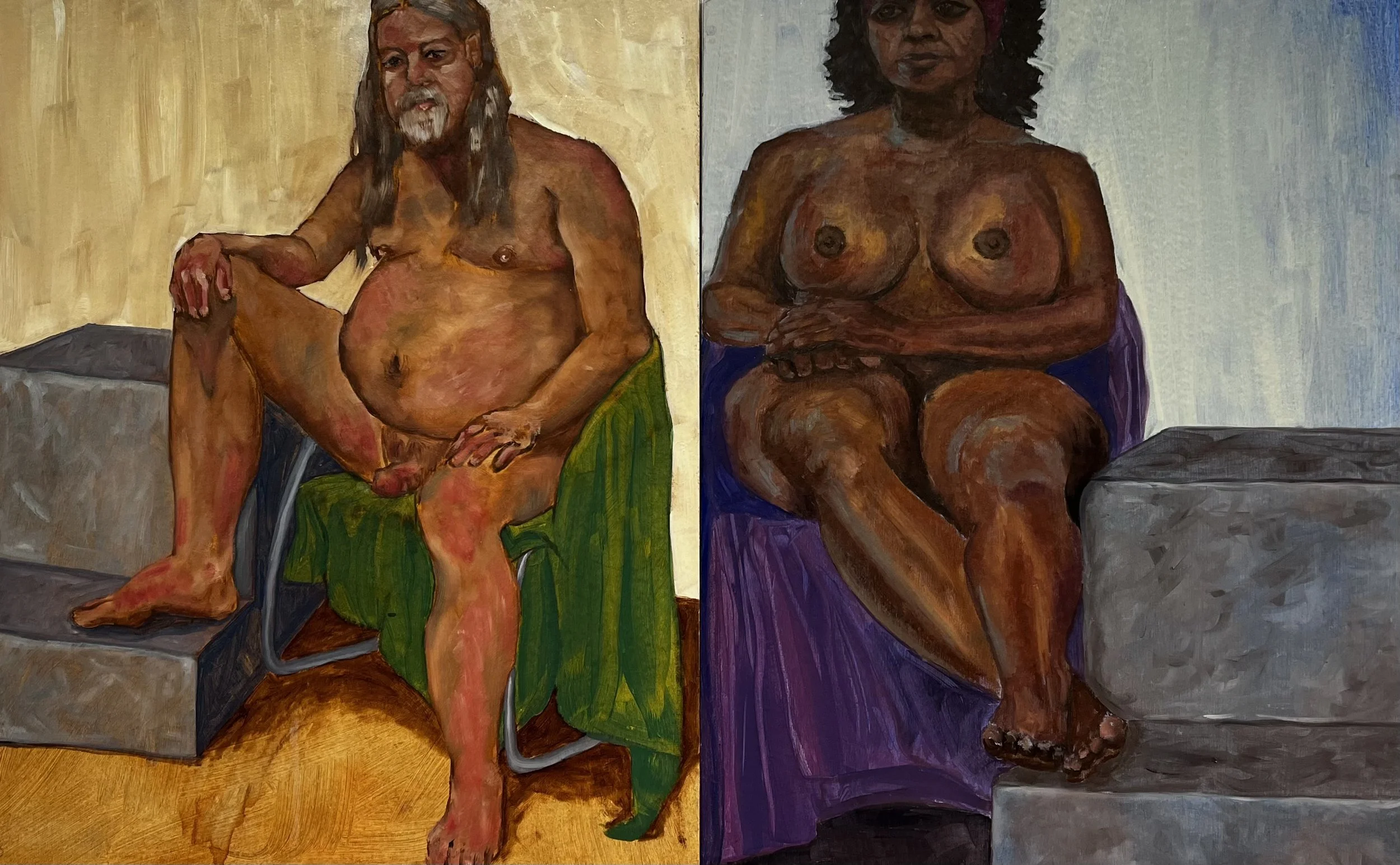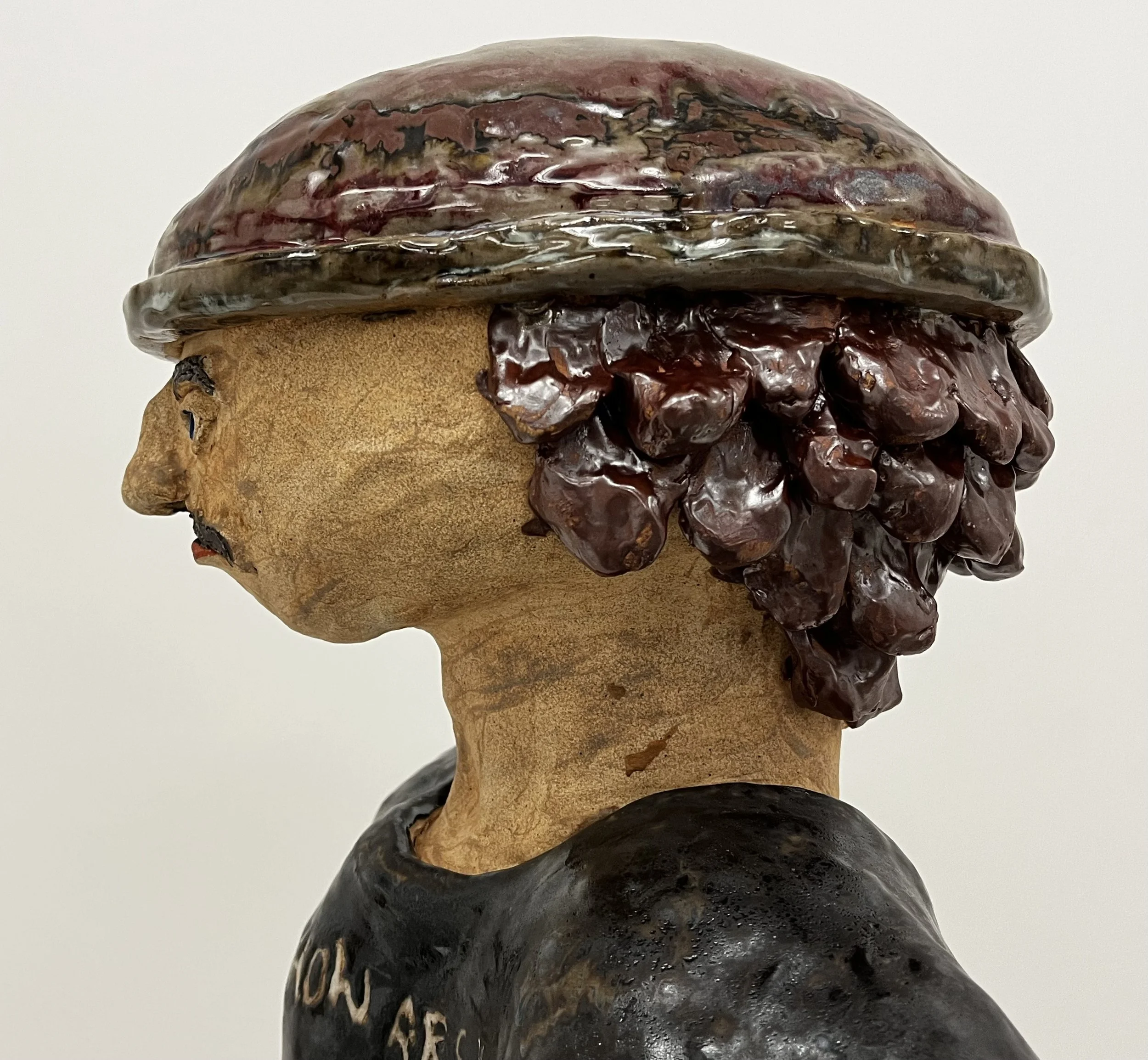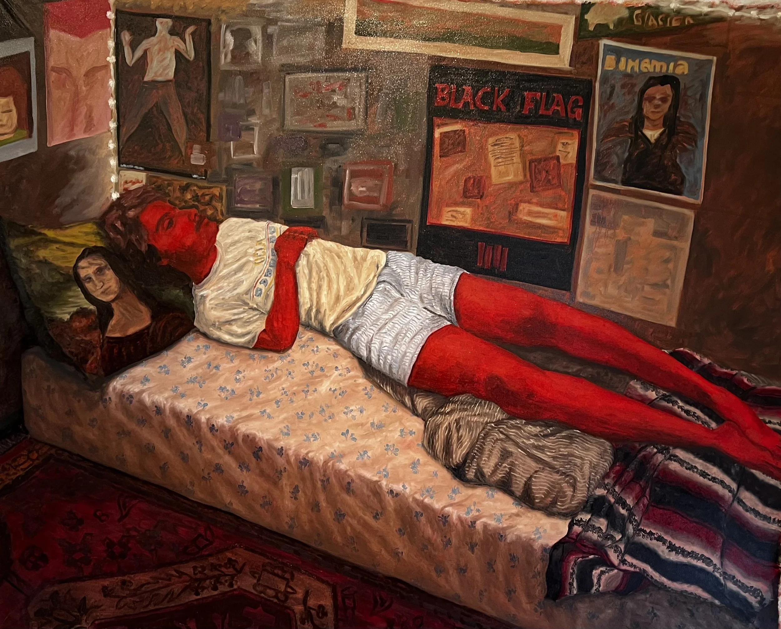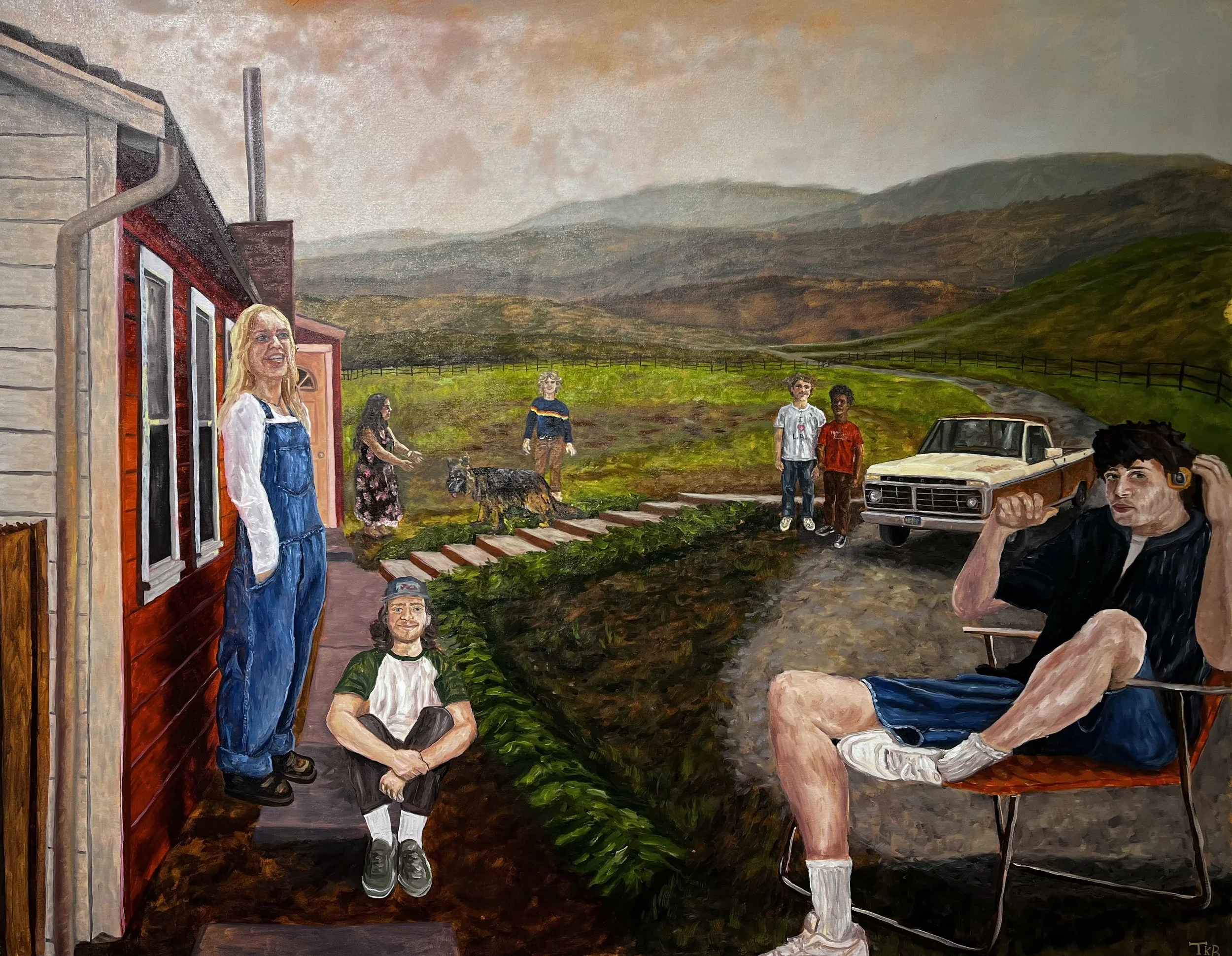 Within my first year living and attending school full time in Los Angeles, my artistic output has become increasingly biographical. I attempt to depict the changes, moments, and feelings that stick out and linger as I navigate each day through introspection and by focussing inwards. I want to thoughtfully and honestly present my experience through artistic expression. For example, one of my recent oil paintings collages and commemorates my home and its people, representing relationships both old and new. I show myself reuniting with family after living in LA for several months and how I’ve changed and grown. Another piece I’ve created is a self-portrait made from high fire ceramic. Upon reflecting, I think this piece was a way of me claiming my image and reassuring how I present myself to others. With my work, I am questioning and reworking my mind’s ideals relating to home, family, and self-image. At this point in my career, my art feels as if it’s an extension of my self.