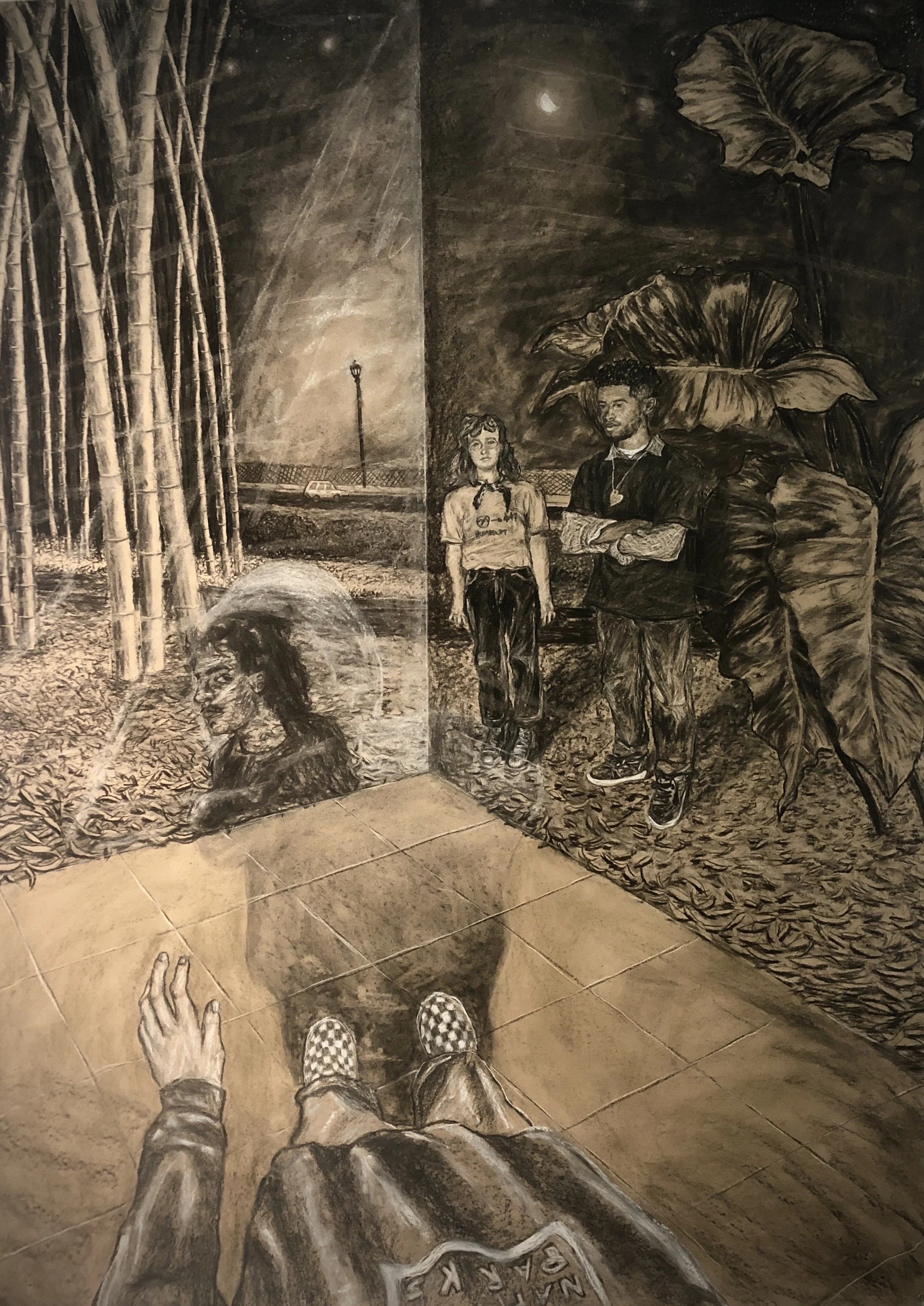 My favorite mediums I have worked in are charcoal, chalk and oil pastels, oil paint, and ceramic, but, as I take more classes, I am very open and eager to try new materials, methods, and creative processes to see how my art can progress. Looking forward, as I am about to start another academic year and jump head-on into my art practice again, I hope to create art with more diverse and complex themes and focus on advancing my visual language beyond pure representational images and focus more on the materiality of mediums and how to use them to further my arts’ implications.