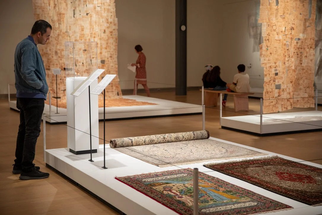 For example, every day in my studio I take a lint roller and clean up the sewing remnants from my textile practice and each lint roller square becomes like an abstracted rug. These “rugs” are threads to stories that I only have partial access to. When laid out together, they tell their own story of my fragmented understanding of my heritage.