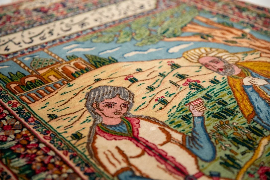 This story inspired me to look into the folklore of Persian magic carpets as something magical that can transport anyone anywhere in the world in a moment. I started to think about the migrant journey through these stories and how it mirrors an exile and a bittersweet moment of having escaped persecution but also not being able to return to your homeland.